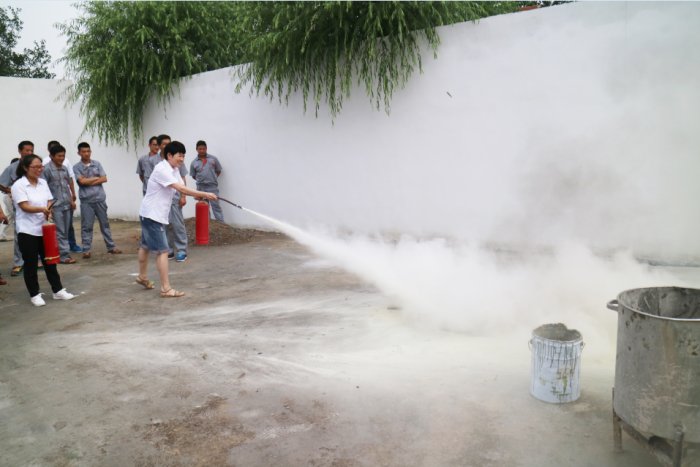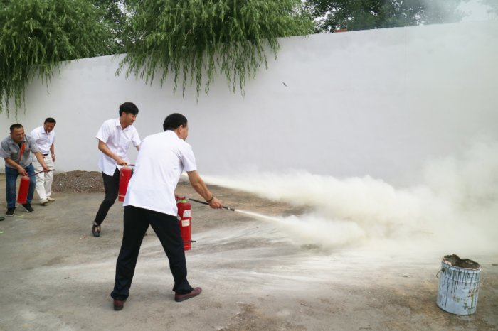 接着在空地进行灭火器材实操演练环节,安全员讲解了消防器材的原理、使用方法以及相关的注意事项,并进行了现场演试。随后让员工亲自体验了现场灭火的过程,面对熊熊燃烧的火堆,员工们严格按照灭火器材的使用方法,将大火迅速扑灭,做到了冷静沉着应对突发火情,成功快速扑灭明火的消防标准。